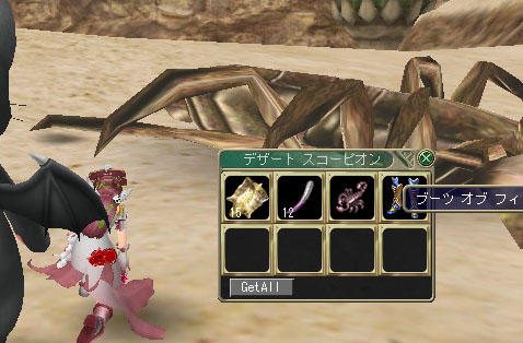 フィヨ装備を求めて3日目、またも砂漠でサソリ乱獲です('ω')ノ