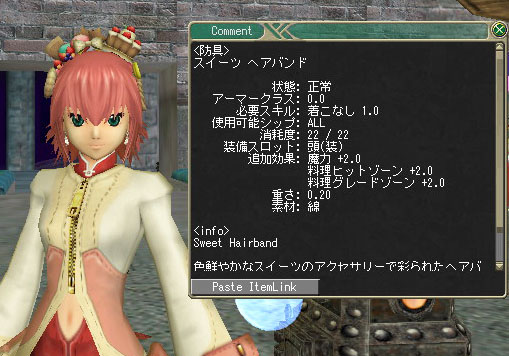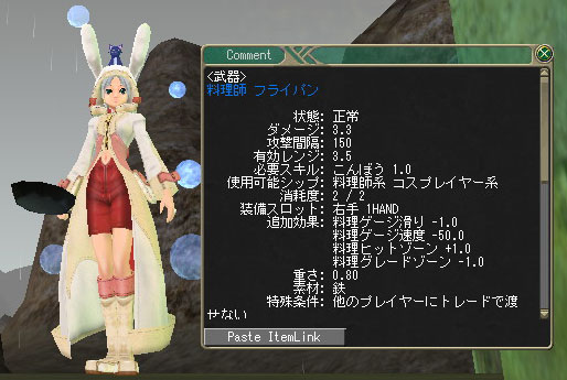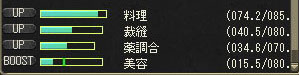 料理スキルは74.2だけど、上級者用フライパンとスイーツヘアバンドを使ってMG枠は4つ。