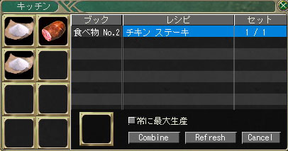 主に作るのは各種焼肉と(主にオルヴァン焼肉)パーチメントスクロールとヴェラムスクロール(トレハンで使うので消耗品)