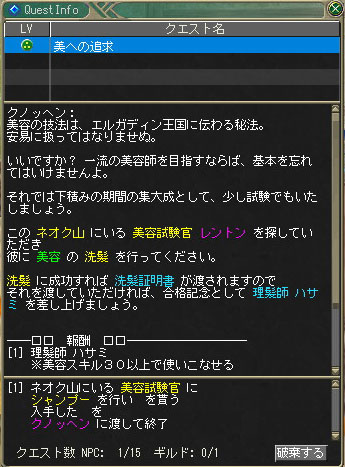30.0まで上げたら、NPCのクノッヘンからクエストを受けて