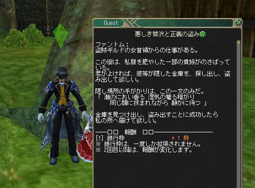 まずはビスク東の酒場の近くでファントム(NPC)からクエストを受けます。