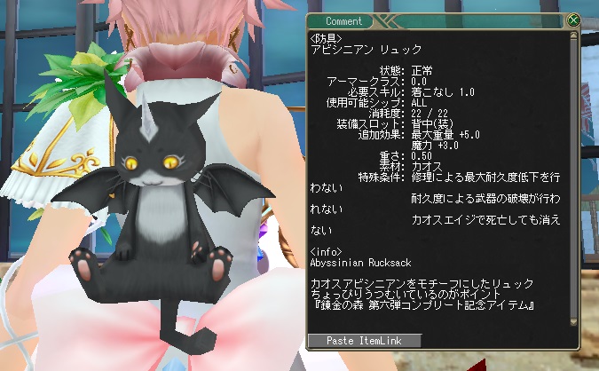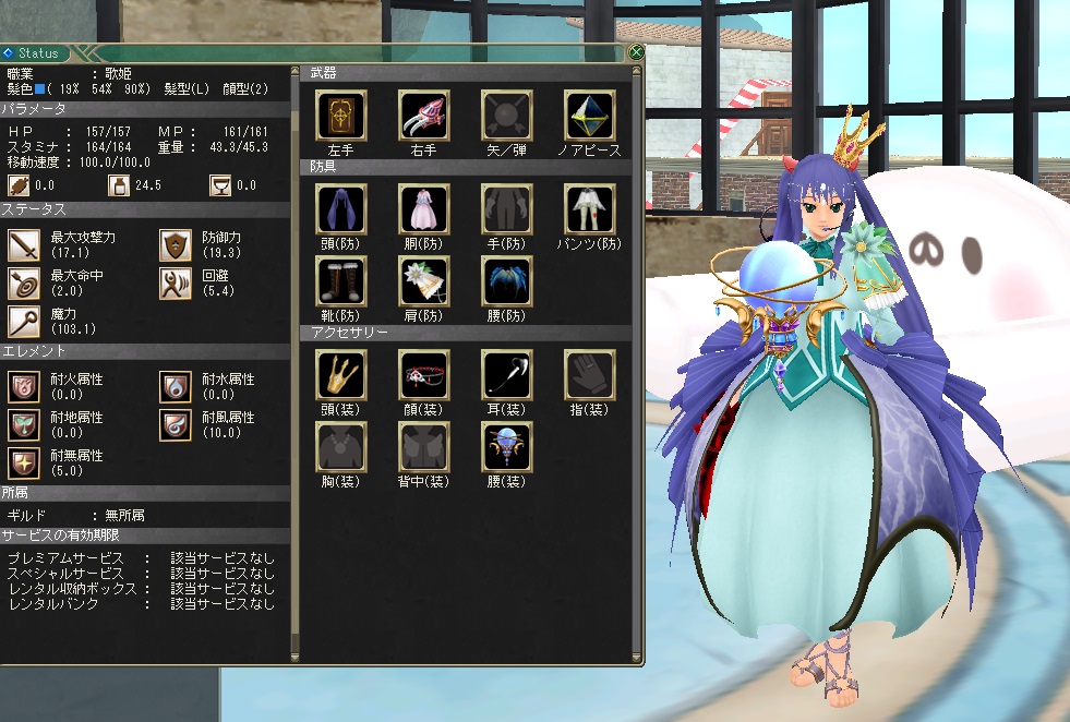 空いてる胸装飾はひよこペンか賢者の首飾り、腰装飾はバスかブルウィップです。