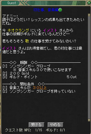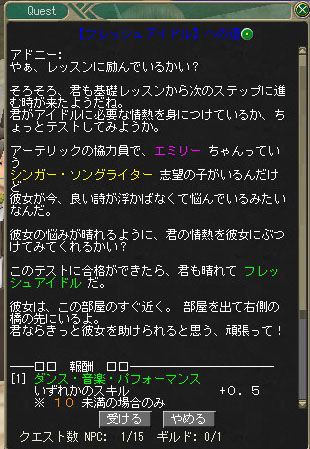 酒場に夜になるとお客さんが来るので、話しかけて歌を披露するというクエストです